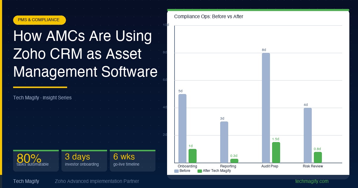 How AMCs Use Zoho CRM for Distributor Management | Tech Magify 60%reduction in distributor onboarding time with automated workflows 3ximprovement in distributor engagement tracking accuracy