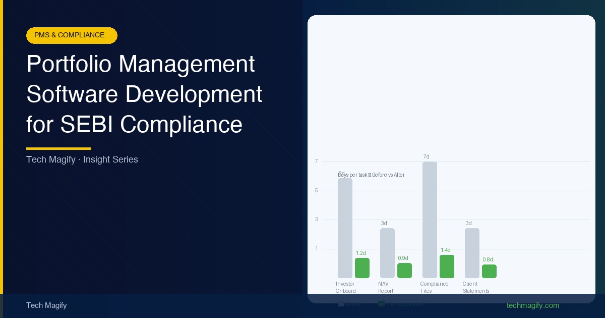 SEBI compliance demands precision that spreadsheets cannot deliver. Portfolio management software development helps PMS firms automate reporting, onboarding, and NAV computation at scale.