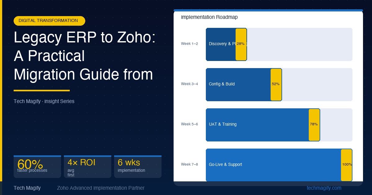 Financial services firms running legacy ERP systems face mounting compliance pressure and integration headaches. Here’s how a structured Zoho ERP migration delivers faster reporting and fewer manual workarounds.