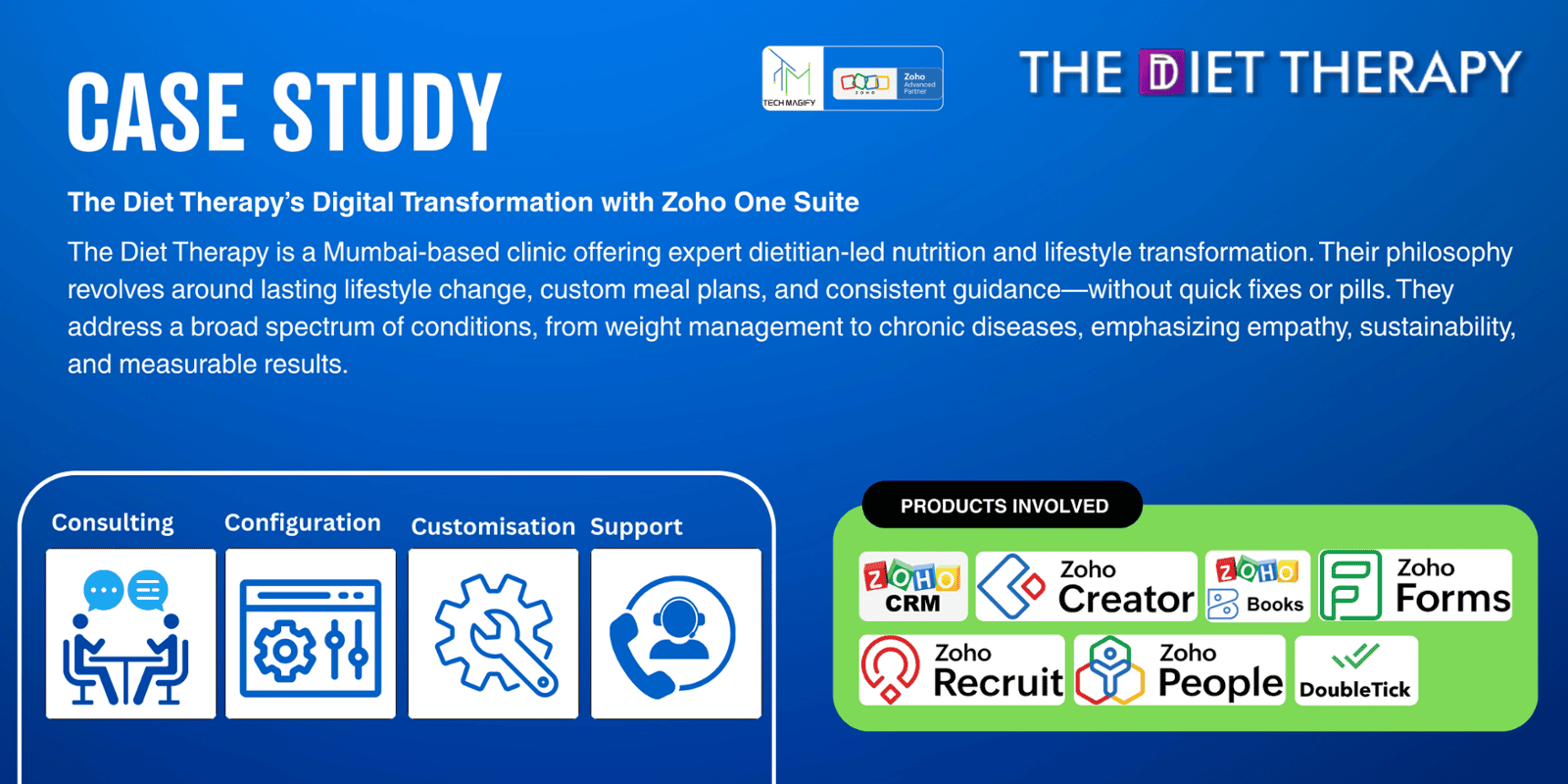 Consulting, Configuration and customisation of Zoho One for The Diet Therapy
